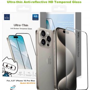WiWU 6.9″ iPhone Tempered Glass Screen Protector/Ultra-thin Anti-reflective HD Tempered Glass, Model: Wi-GT010, Designed for Apple iPhone 16 Pro Max (Transparent)