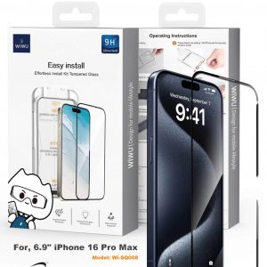 WiWU 6.9″ iPhone Tempered Glass Screen Protector/Dust-free Easy Installation Tempered Glass, Model: Wi-SQ008, Designed for Designed for Apple iPhone 16 Pro Max (Clear/Transparent)