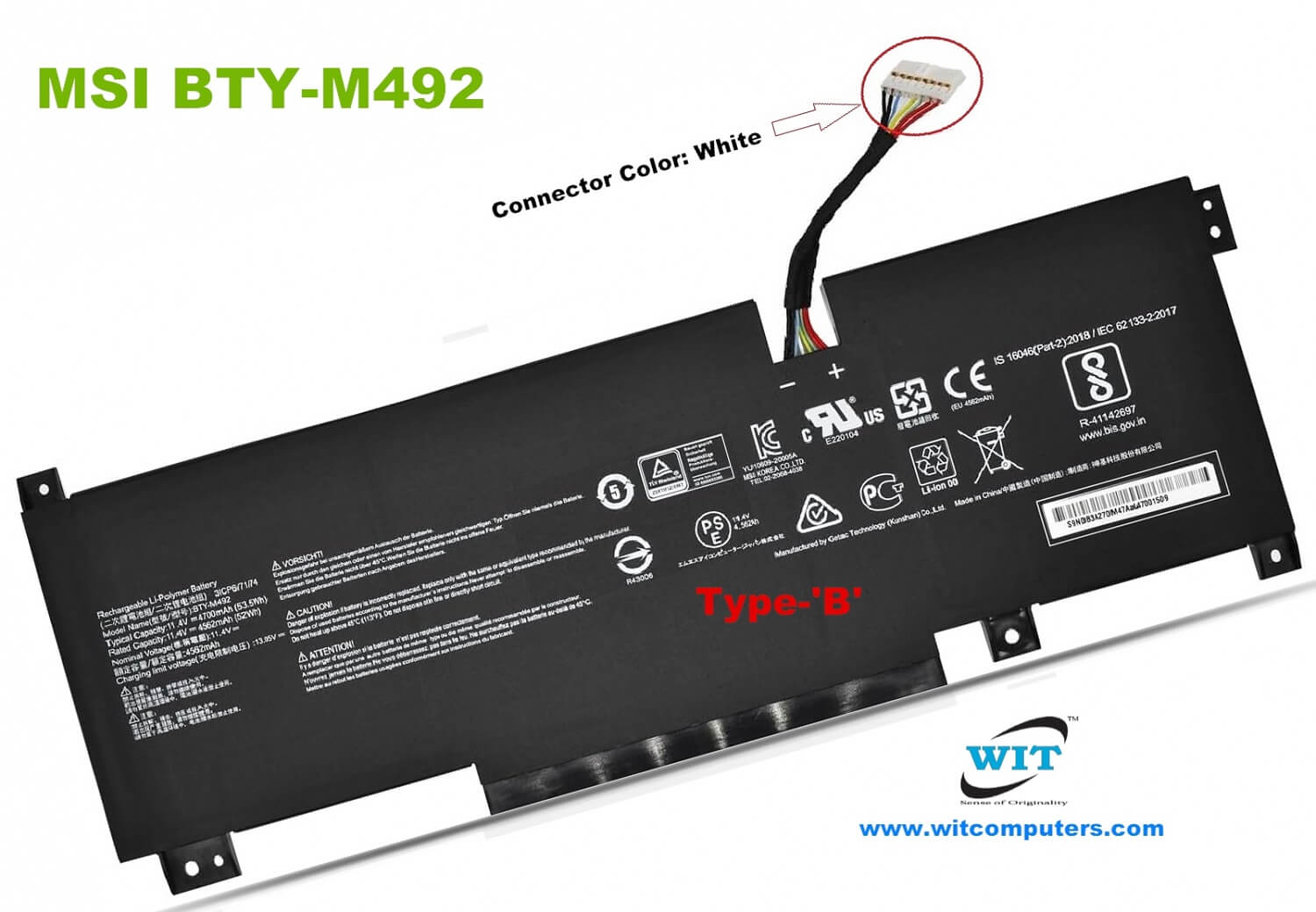 BTY-M492, 3ICP6/71/74 Laptop internal Battery for MSI Pulse GL66 11UDK, MSI Pulse GL76 11UEK, MSI Bravo 15 B5DD, MSI Sword 15 A11U, MSI Katana GF66 GF76 11UC, MSI Crosshair 15 A11UCK, MSI Crosshair 17 A11UCK, MSI Cyborg 15 A12VE-016XPL, MSI CreatorPro M17 A12UIS series