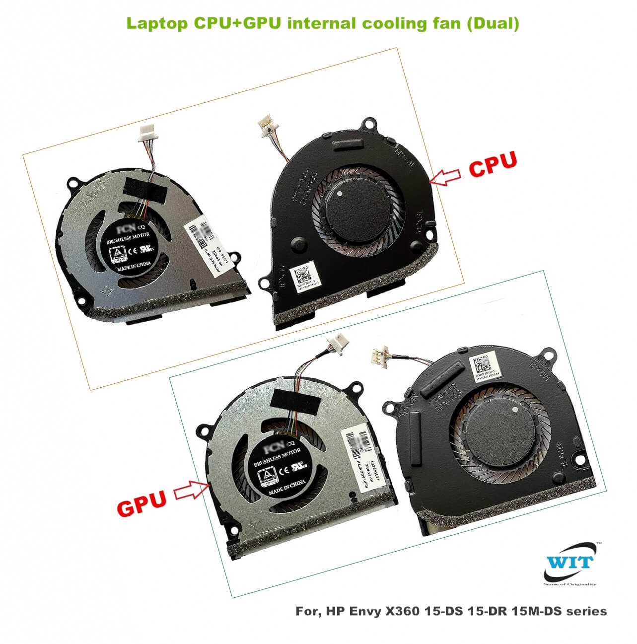 Laptop CPU+GPU internal cooling fan (Dual) for HP Envy X360 15-DS 15-DR 15M-DR 15M-DS 15M-DR1011DX 15M-DR1012DX 15M-DS0011DX 15M-DS0012DX TPN-W142 TPN-W143 Series , P/N: L53541-001, L53542-001, DFS5K1211591H-FMAU, Voltage: DC 5V 0.5A, Connector: (4-wires) 4-pins