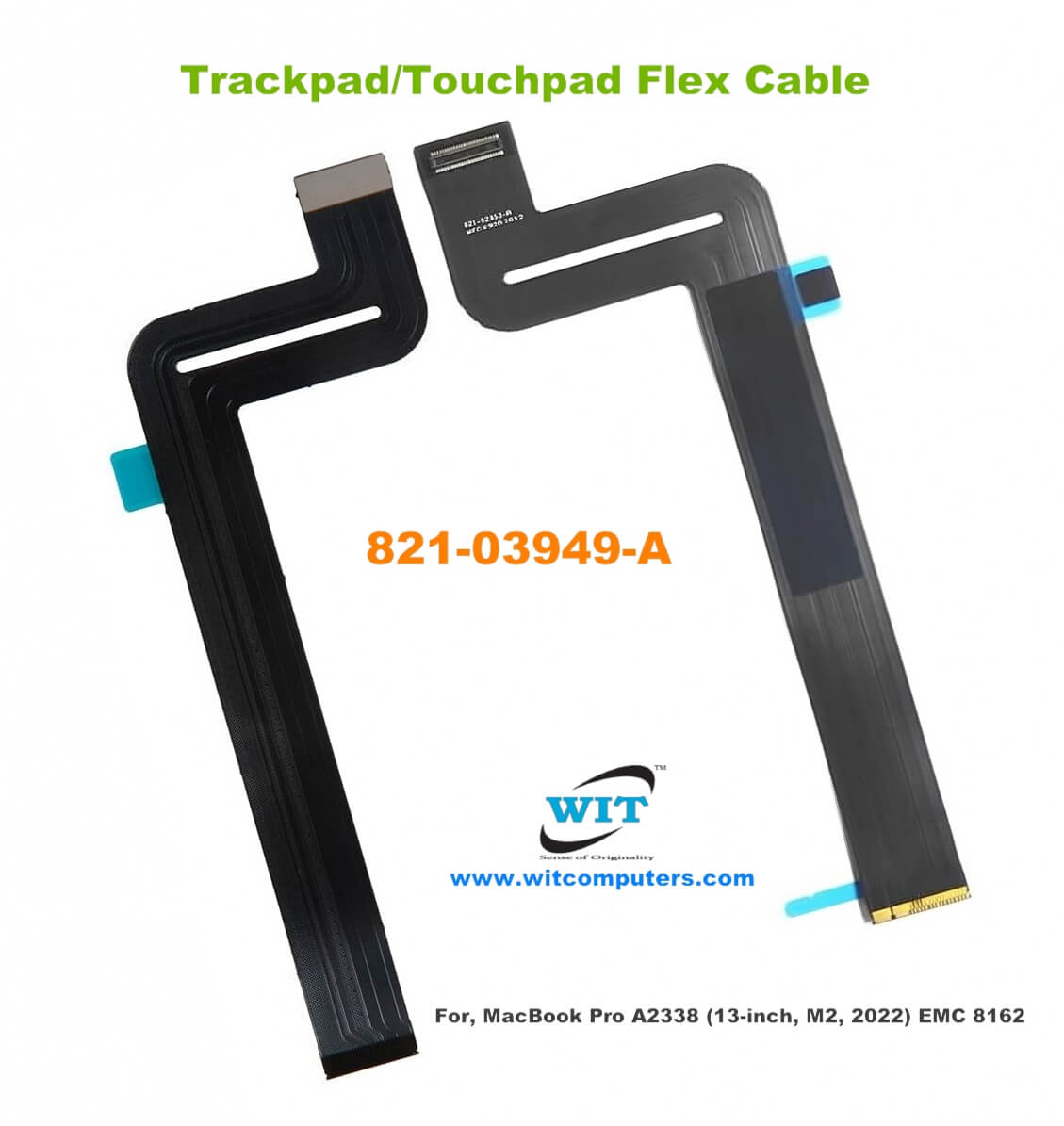 Trackpad Flex Cable or Touchpad Flex Cable for Apple MacBook Pro 13″ Two Thunderbolt Ports M2 2022 A2338 (EMC 8162 Mac14,7 Mid 2022) 3.49 GHz M2 8-Core, P/N: 821-03949-A
