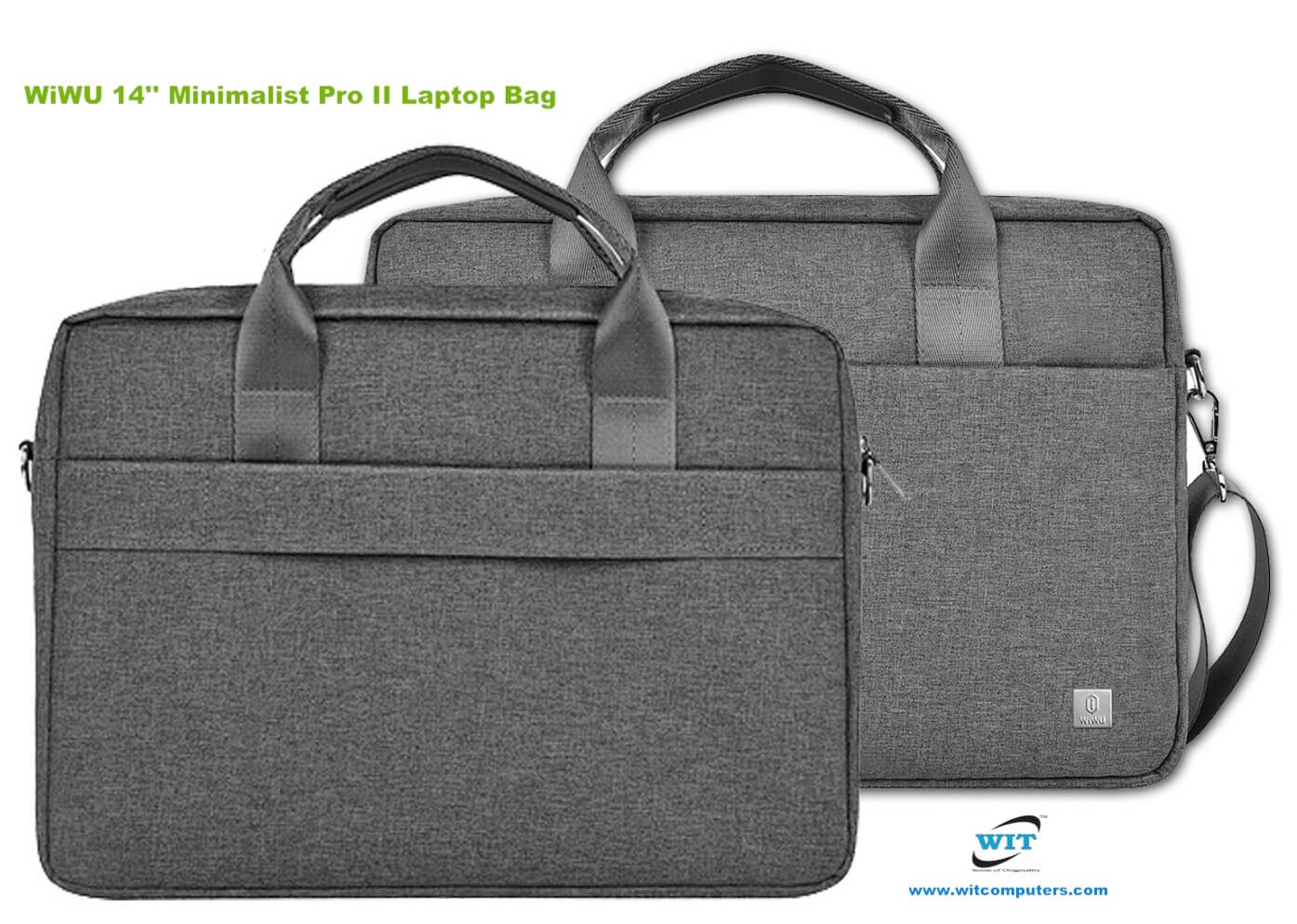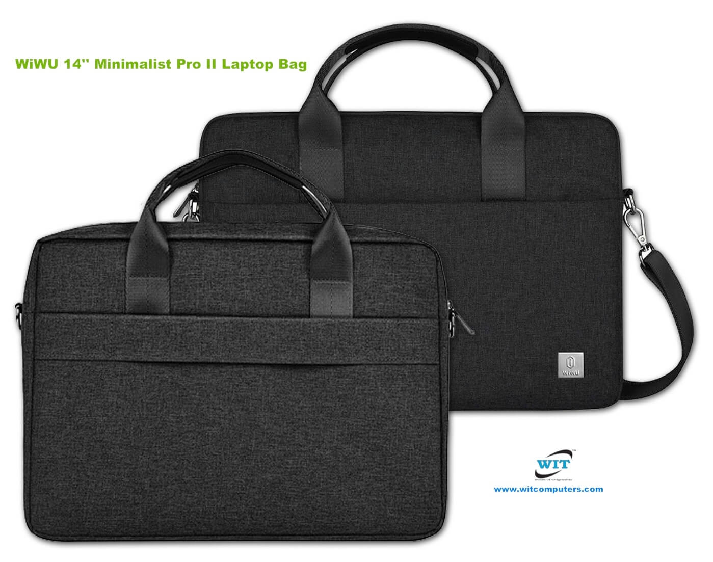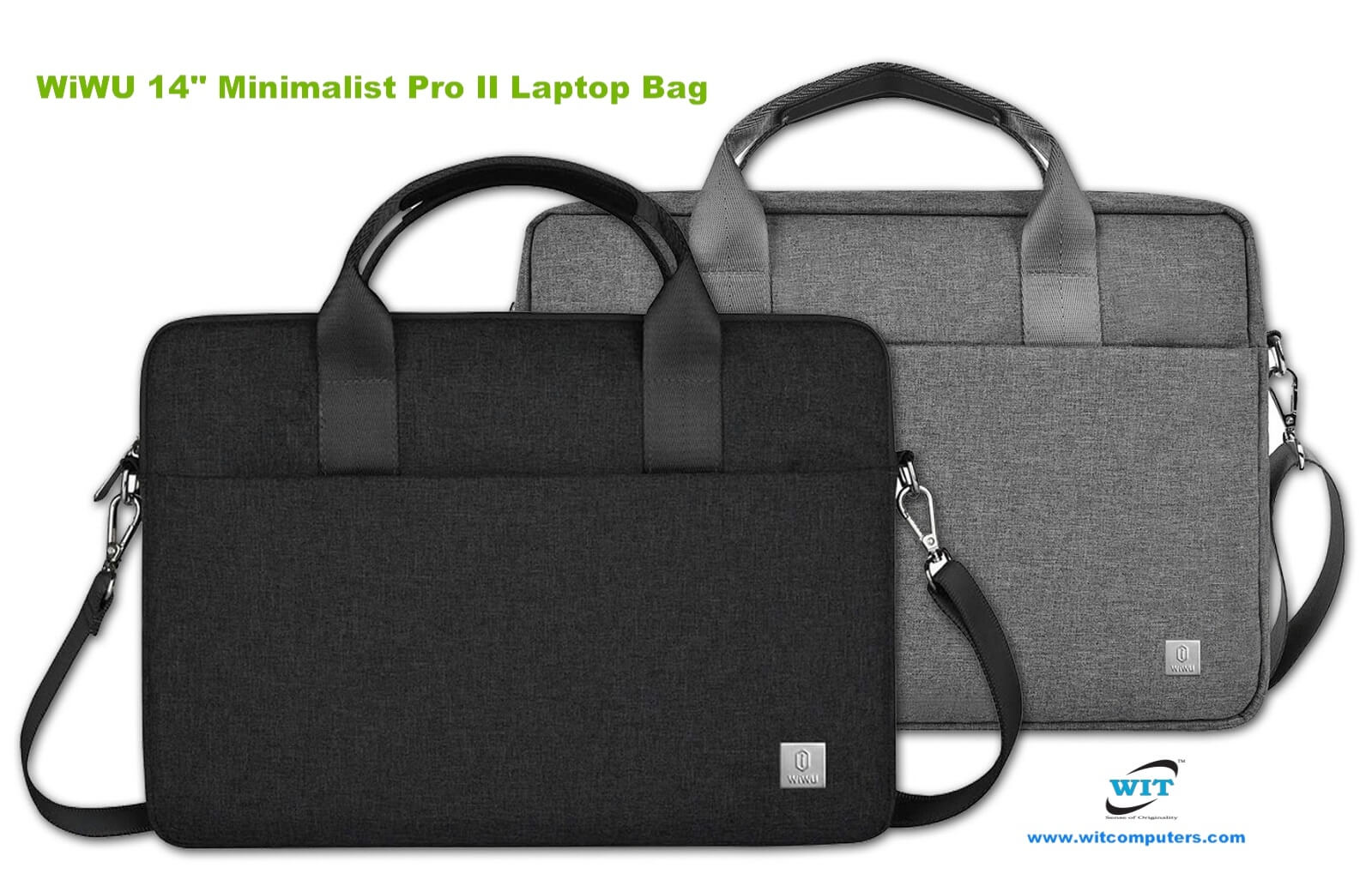 WiWU 14” Minimalist Laptop Bag Pro II, 14” Minimalist Pro Laptop bag Pro 2, WIWU Minimalist Lightweight Waterproof Laptop carrying Bag (Series: BAG832) for up to 14″ Laptop/Notebook/MacBook, Color: Black & Grey