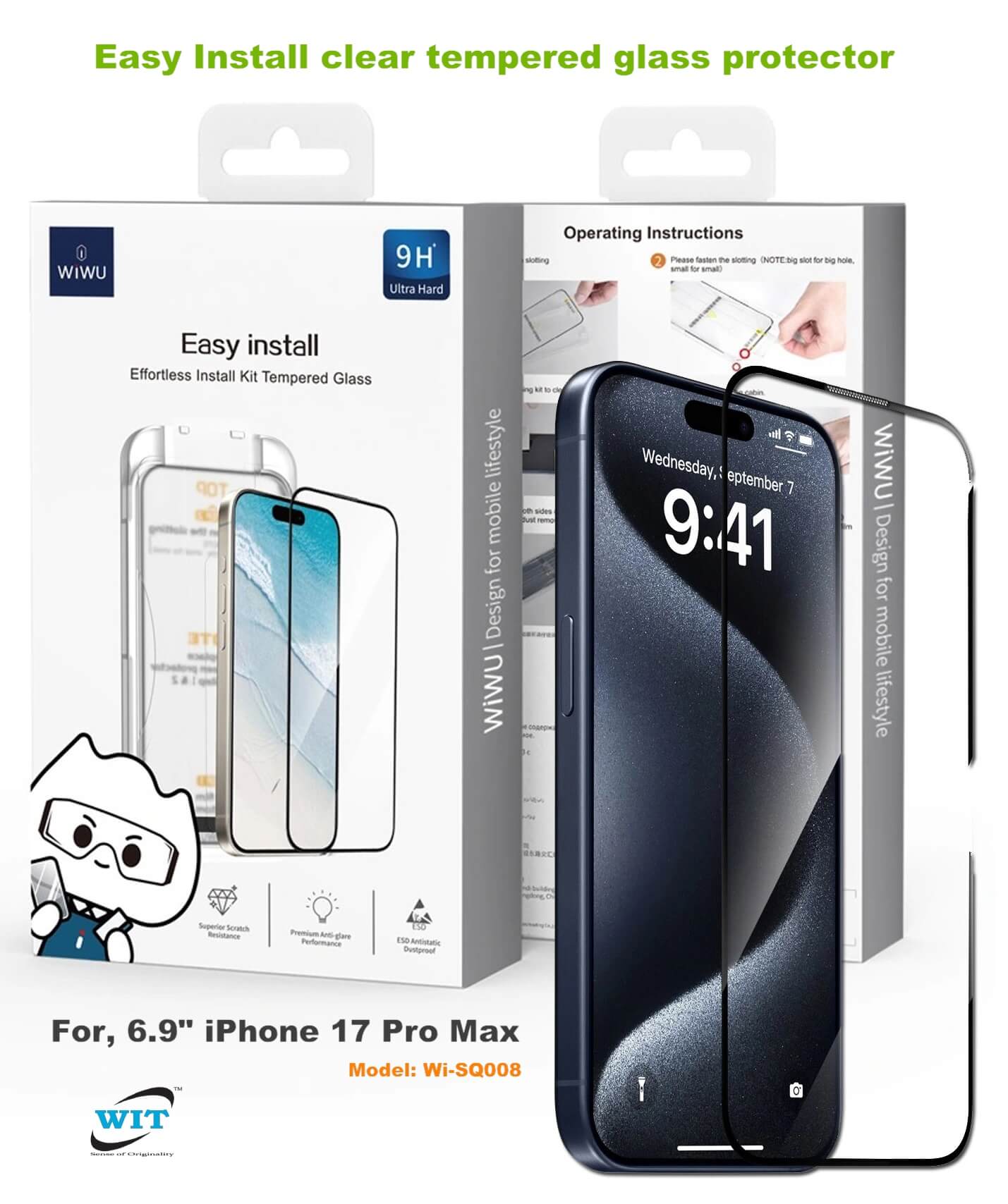 WiWU 6.9″ iPhone Tempered Glass Screen Protector/Dust-free Easy Installation Tempered Glass, Model: Wi-SQ008, Designed for Designed for Apple iPhone 17 Pro Max (Clear/Transparent)