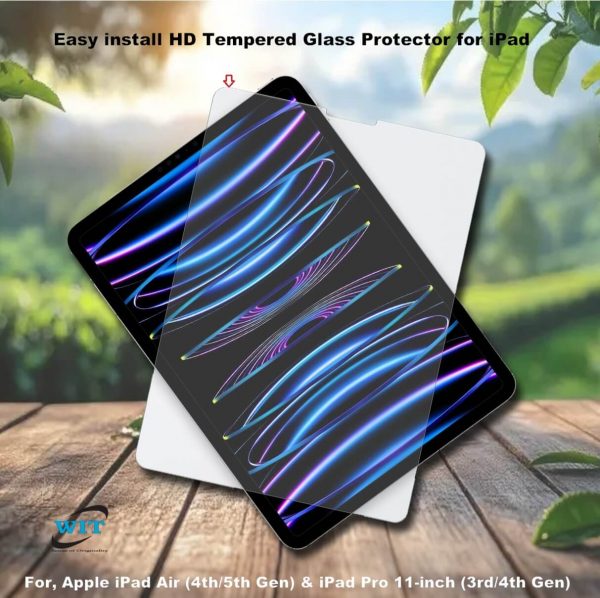 WIWU Easy install HD Tempered Glass Protector/9H Tempered Glass Screen Protector for Apple iPad Air 10.9-inch (4th Gen) 2020, iPad Air 10.9-inch (5th Gen) 2022 and iPad Pro 11-inch (1st Gen) 2018, iPad Pro 11-inch (2nd Gen) 2020, iPad Pro 11-inch (3rd Gen) 2021 & iPad Pro 11-inch (4th Gen) 2022 (Clear/Transparent)