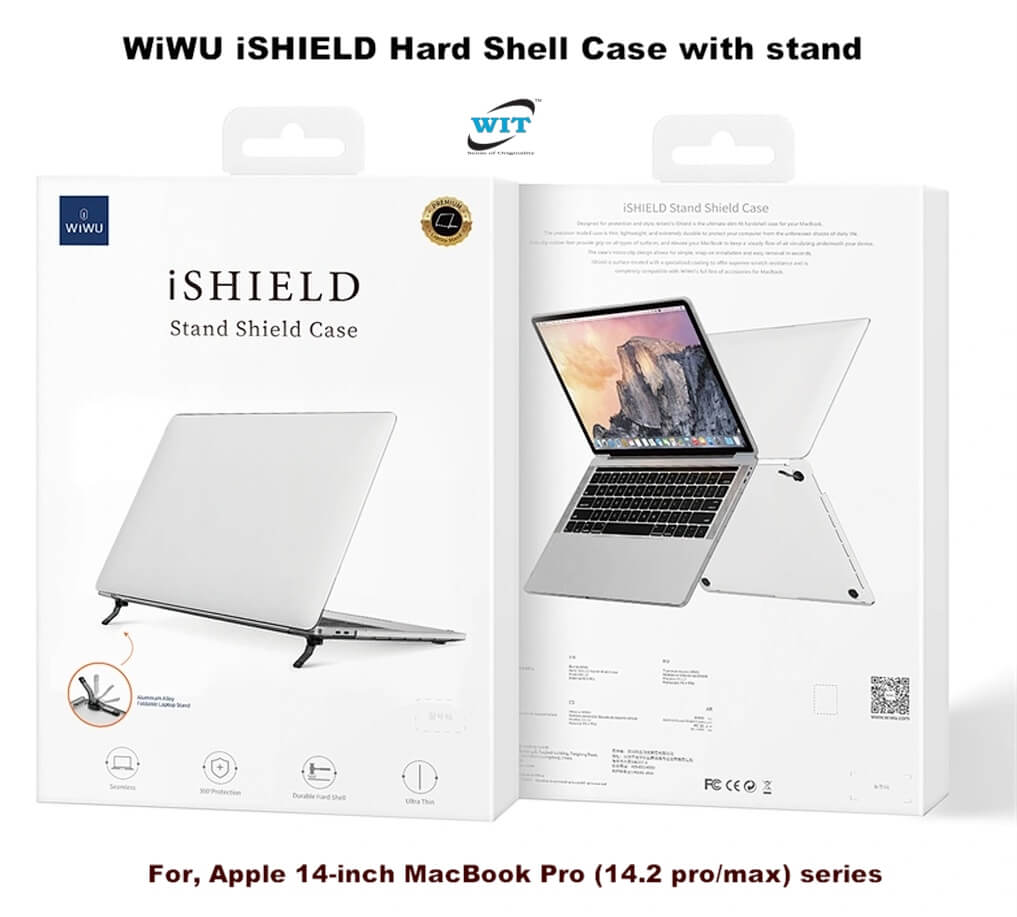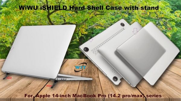 WiWU iSHIELD Stand Shield Case/iSHIELD Hard Shell Case with stand for Apple 14-inch MacBook Pro (14.2 pro/max) A2442 (Late 2021)/A2779 (Early 2023)/A2992 (Late 2023)/A2918 (Late 2023)/A3112 (Late 2024)/A3185 (Late 2024)/A3401 (Late 2024)/A3434 (Late 2025), Apple Silicon: M1/M2/M3/M4/M5, (Clear/Transparent)