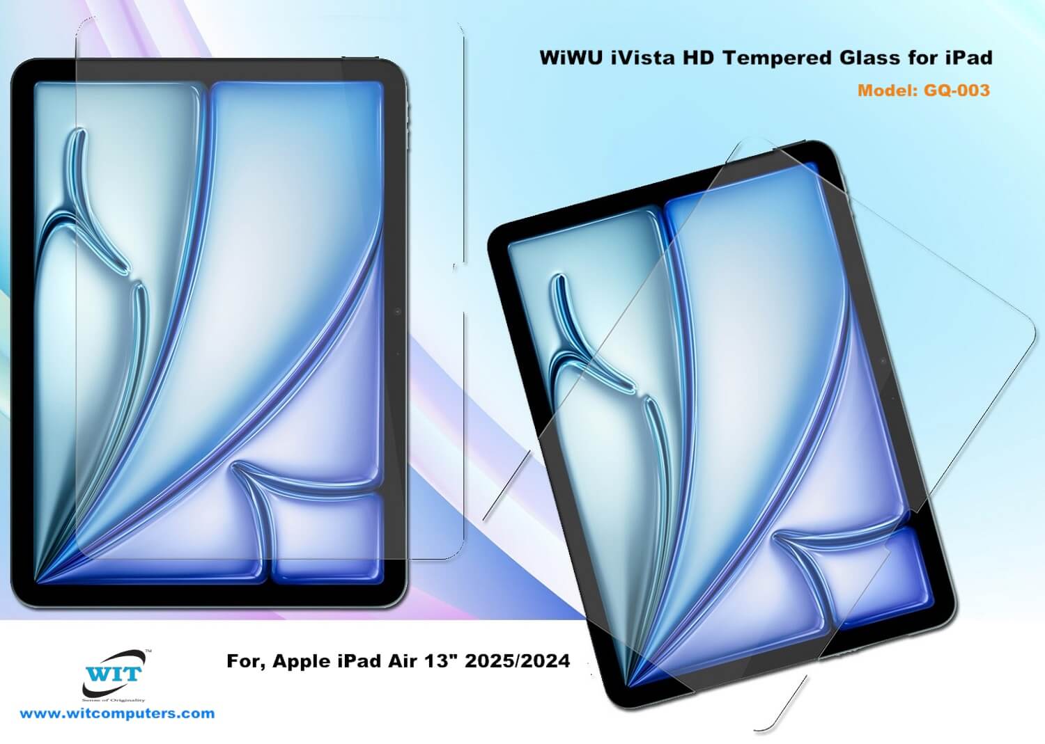 WIWU iVista Tempered Glass Protector (Model: GQ-003)/iVista iPad HD Tempered Glass Protector/9H Tempered Glass Screen Protector Specially designed for Apple iPad Pro (12.9-inch) 2018-2022 | 3rd Gen, 4th Gen, 5th Gen, 6th Gen | and Apple iPad Air (13-inch) 2024-2025 | M2, M4 | (Clear/Transparent)