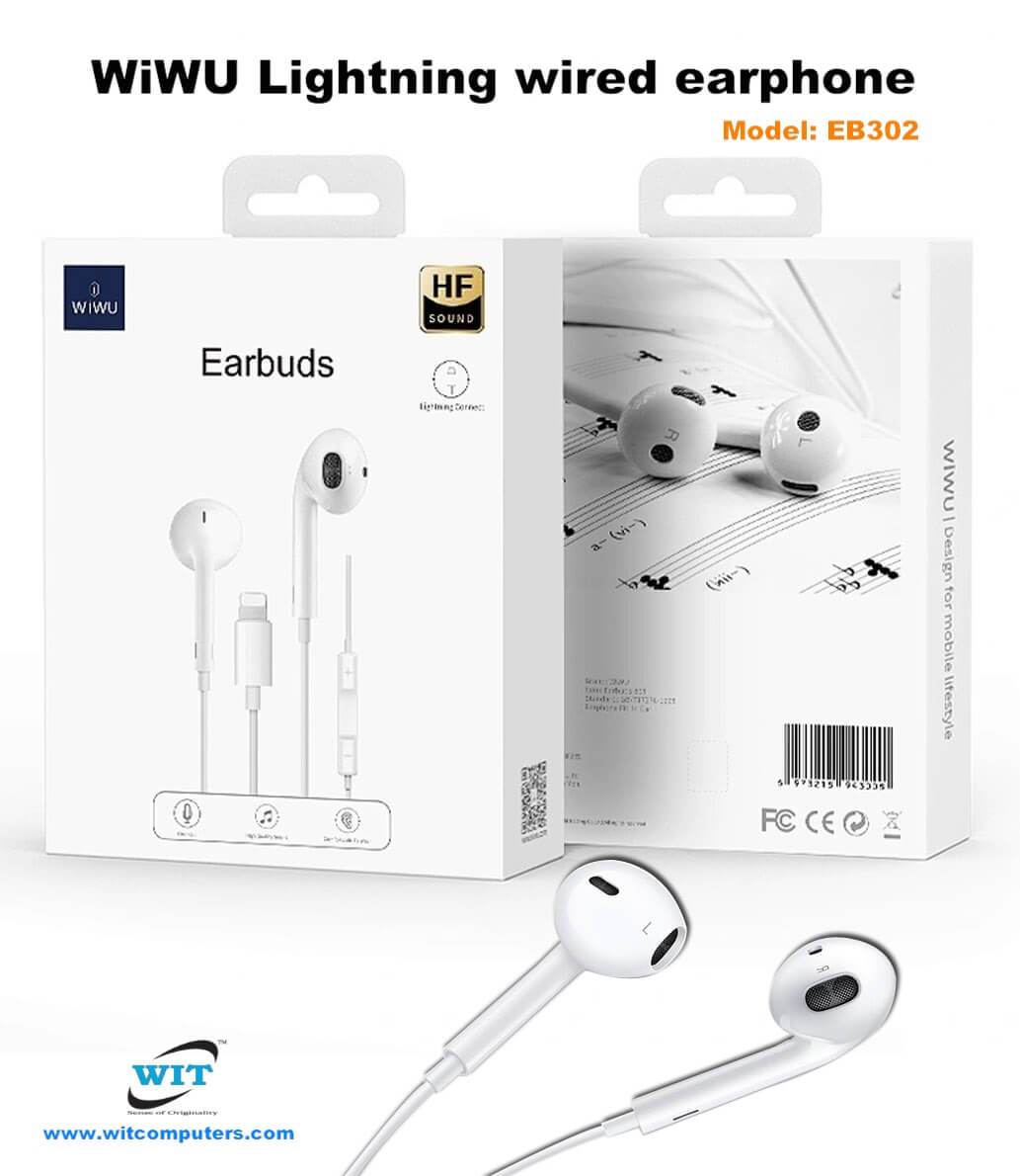 WiWU Lightning wired earphone, Stereo Wired Earbuds, Model: EB302 Ergonomic Design Sports Headsets EB302 (Earbuds), Widely compatible with iPhone