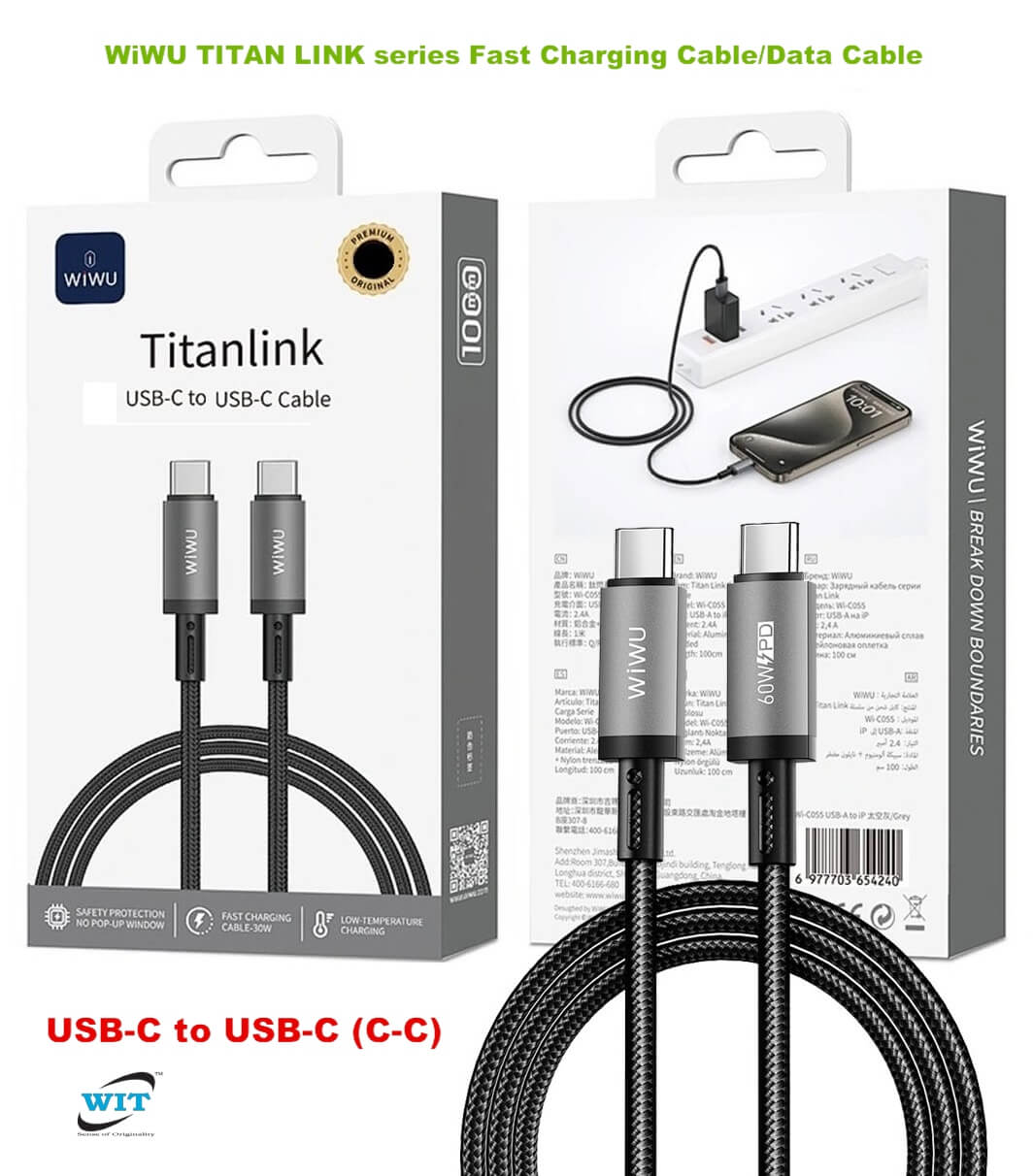 WiWU TITAN LINK series Fast Charging Cable/Data Cable, Type-C to Type-C (C-C), USB-C to USB-C Cable, Model: Wi-C057 C-C, Length: 100cm, Support 60w max fast charging
